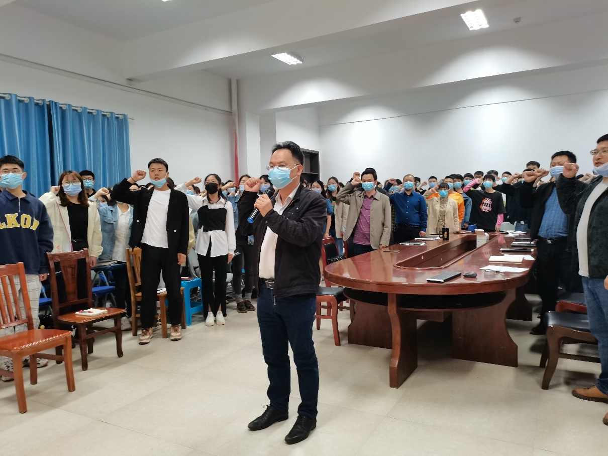 会议开始,学院党委书记盛义发带领全体与会人员进行入党誓词的宣誓,激励所有同志严格要求自己,牢记入党誓词,坚定为共产主义事业而奋斗终身的理想信念。
