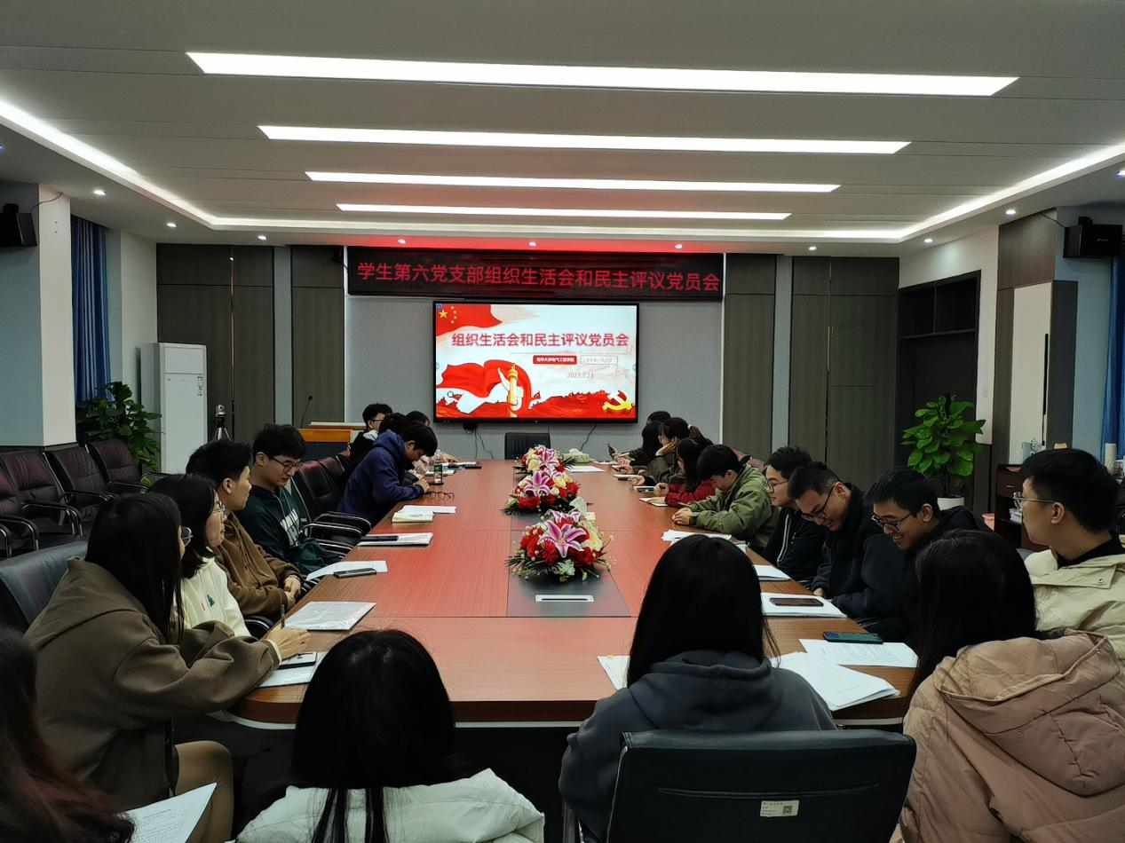 2023年3月23日中午,best365官方网站登录入口学生第六党支部“组织生活会”和 “民主评议党员会”于电气楼B301召开。学生第六党支部书记袁梦甜与学生第六党支部全体党员参加会议。
