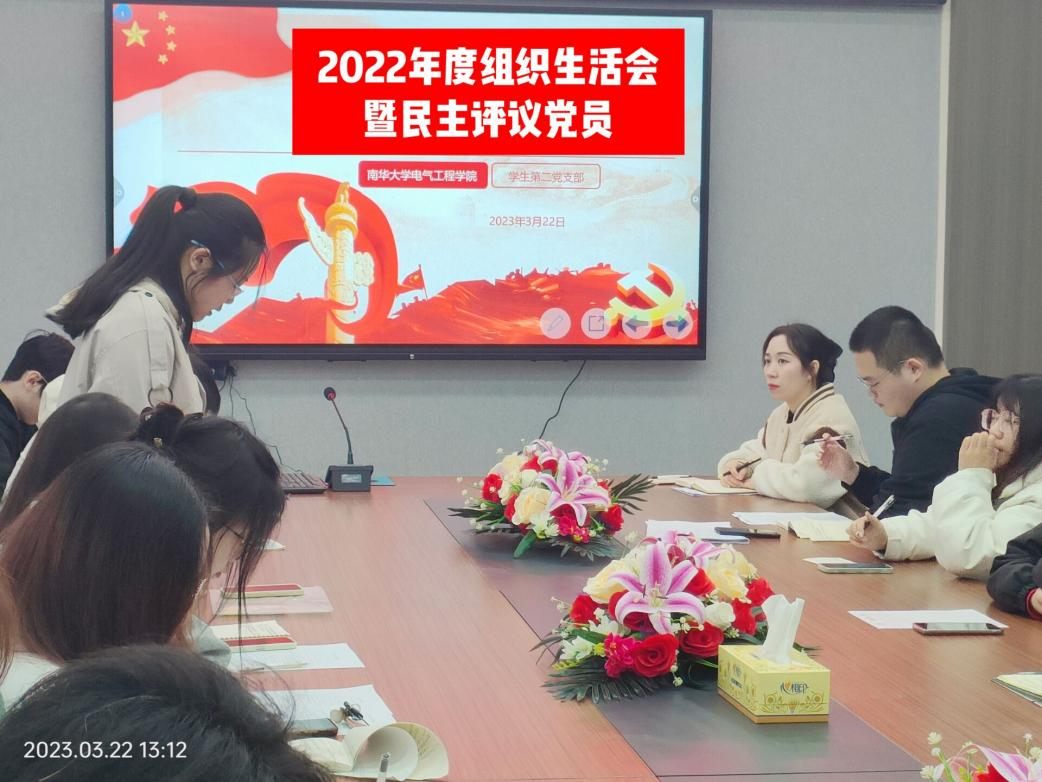 为全面深入学习贯彻党的二十大精神,教育引导广大党员厚植爱党、爱国、爱社会主义的情感,加强党员队伍建设,3月22日中午,best365官方网站登录入口学生第二党支部召开2022年度组织生活会暨民主评议党员大会,参加本次大会的有党支部书记周珍珍老师及全体学生党员。