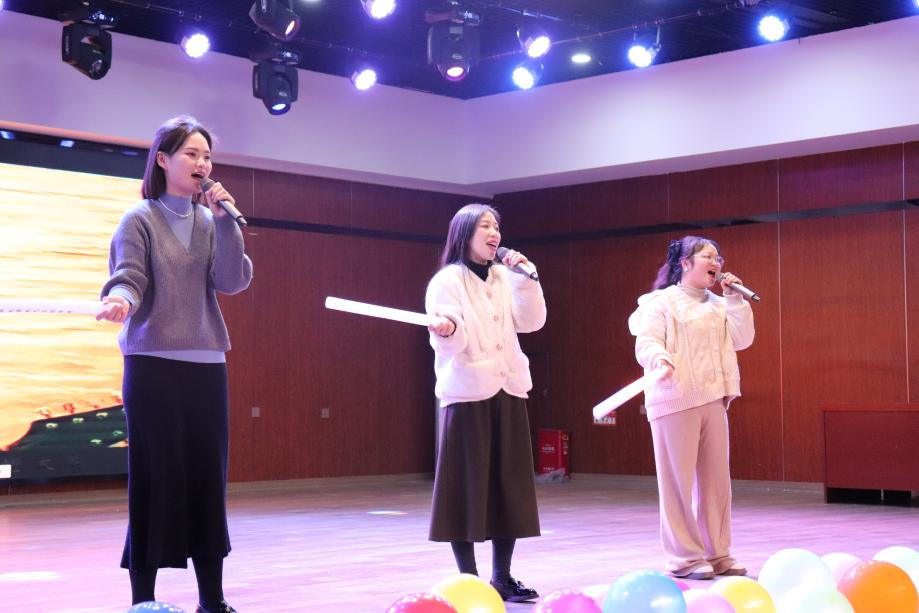 整个晚会过程中穿插着三次互动环节,你比我猜、飞花令、听歌识曲,同学们积极参与游戏,乐在其中。同学们的热情为晚会再添一把火,尖叫声、欢呼声此起彼伏。