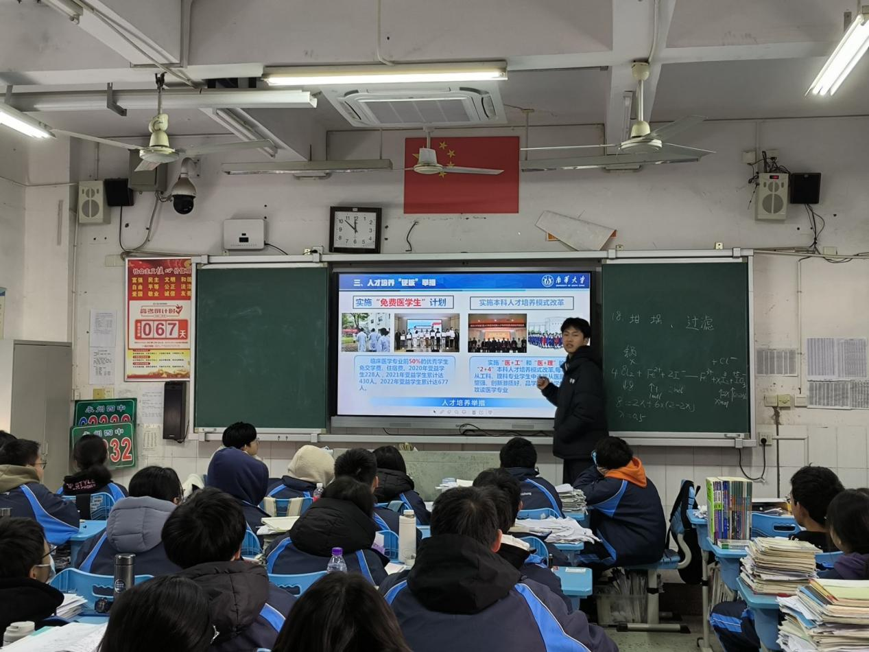 在回访高中母校期间,我有机会向学弟学妹们介绍南华大学,分享了一些个人的学习经历和方法,希望能启发他们找到适合自己的学习策略,鼓励他们勇敢面对挑战,坚定目标。