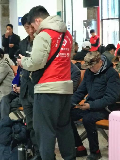 在志愿者负责人与火车站工作人员的组织和带领下,志愿者们身着红色小马甲,分布在候车大厅、入站口出站口、公交车出租车候车区,在各个岗位上为旅客提供问询解答、安全提示、秩序维护等服务。他们协助旅客买票,为旅客指引道路、搬运行李,提醒旅客遵守禁烟规定。大家都热情地为乘客们服务,认真引导乘客安全有序、放心舒心出行,受到了火车站工作人员及乘客的高度肯定及一致好评。