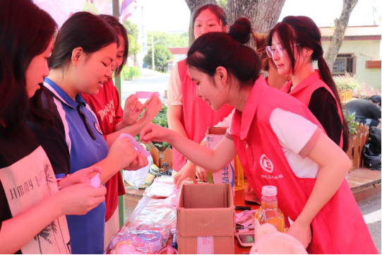 7月5日,团队来到衡南县相市乡,成员们跟当地居民讲解学生资助政策,为他们答疑解惑,确保国家资助政策落地生根、家喻户晓,居民们纷纷表示此次活动表示认可,认为此次活动能有效帮助经济困难家庭学子解决上学难的问题。7月6日,团队来到衡南县第五中学,成员们给准大学生们开了资助政策宣传讲座,详细介绍国家、社会和学校的资助政策,系统地介绍南华大学的资助育人筑梦工程。同时,成员们在学校广场设立摊位,开展了“资助集市,筑梦前行”趣味活动。活动通过发放资助宣传手册、填写调查问卷、资助知识趣味问答等互动,让资助宣传活动开展的有声有色,推动了资助政策在高中校园的落地生根。
