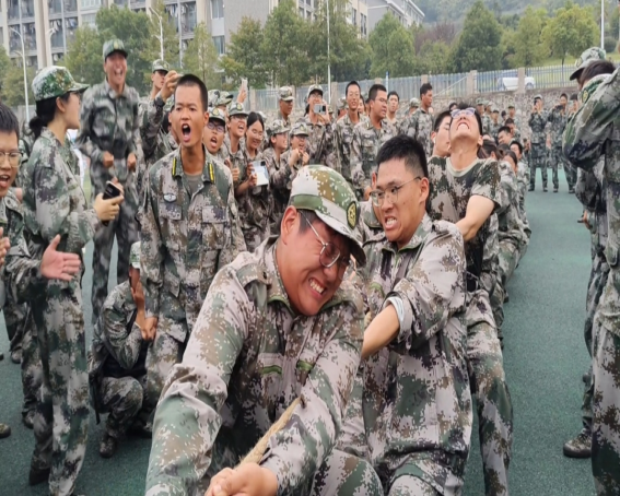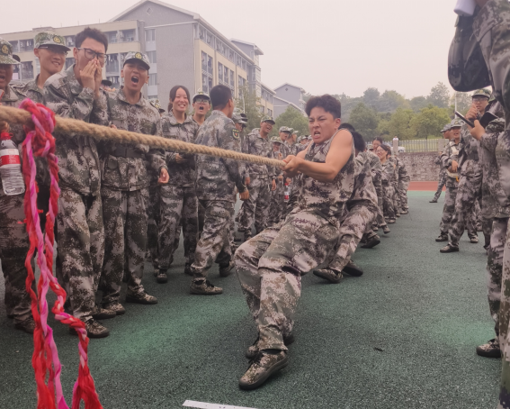 随着裁判的一声哨响,拔河比赛在雨母田径场正式拉开帷幕。各连队的新生们精神抖擞,摩拳擦掌,准备在比赛中一展身手。他们紧握长绳,双脚牢牢踩在地上,眼神中透露出坚定与自信。比赛过程中,同学们齐心协力,口号声、加油声此起彼伏,响彻云霄。每一次的用力拉扯,都凝聚着团队的力量;每一次的坚持不放弃,都彰显着军训期间锻炼出的坚韧品质。观众席上,师生们热情高涨,为参赛队伍加油助威。他们的欢呼声、掌声交织在一起,形成了一股强大的精神力量,激励着场上的每一位队员。军训教官们也纷纷加入到观众行列中,为新生们加油鼓劲,共同见证这一场力量与智慧的较量。经过多轮激烈角逐,最终十营一连凭借出色的团队协作和顽强的拼搏精神,夺得了拔河比赛的冠军。一位参赛队员说:“感谢这场比赛,让我们收获了团结和友谊。”