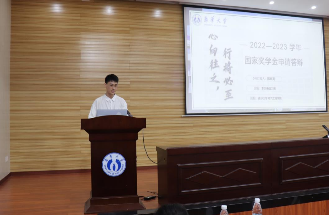 申请本次国家奖学金10名同学依次上台答辩。他们分别从学习成绩、个人荣誉、科研成果、志愿活动等维度展现个人风采,回答评委提问。他们秉持着“明德博学,求是致远”的南华校训,认真学习,全面发展:在学习上,拼搏进取;在竞赛中,勇攀高峰;在党团活动、社会实践中,大放异彩……。