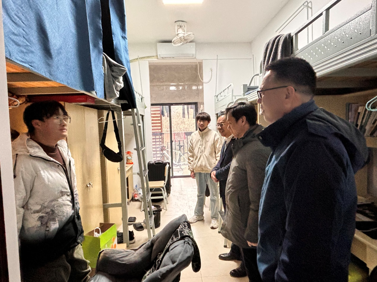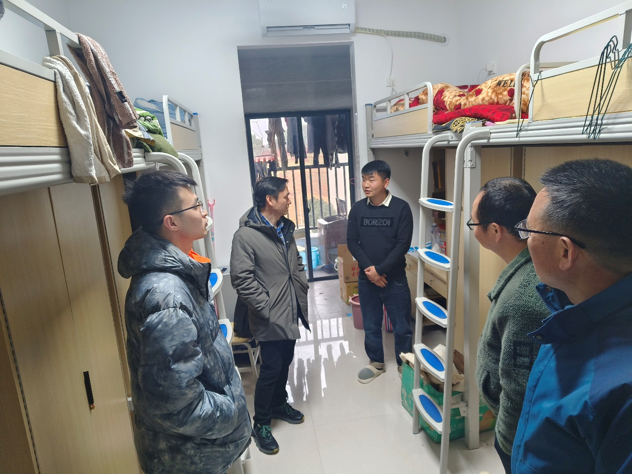 检查人员走进了电气学院各个本科生、研究生宿舍楼。老师们向同学们致以新年的问候和祝福;查看宿舍内外的设施情况、安全状况;倾听学生们的意见和建议,为他们提供帮助和支持;强调宿舍安全,宣传学校学院的各项政策和规定;鼓励保持宿舍内外的整洁,积极参与宿舍文化建设,共同营造一个良好的学习和生活氛围。