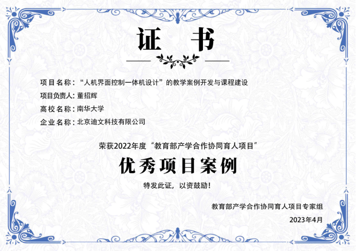 2023年4月1日,教育部高等教育司公布2022年度教育部产学合作协同育人项目优秀项目案例名单,best365官方网站登录入口董招辉老师团队与北京迪文科技有限公司合作的《人机界面控制一体机设计的教学案例开发与课程建设》教学内容和课程体系改革项目荣获“优秀项目案例”称号。