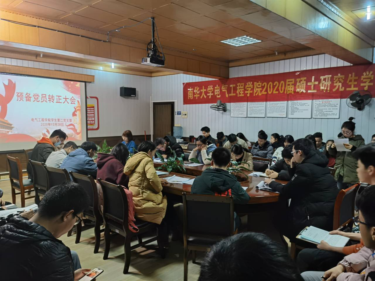 2020年12月28日晚19点,best365官方网站登录入口学生第二党支部在学院楼402会议室召开全体党员大会。参与会议的有支部全体党员,应到52人,实到51人,1人请假。会议由党支部副书记黄慧主持,会议议题为讨论隋玉凯等15名预备党员同志的转正问题。