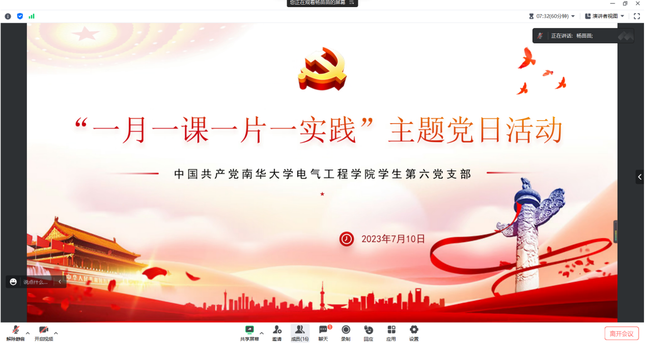 为全面深入学习贯彻党的二十大精神,引领全体学生党员坚定信念,凝聚奋进力量,2023年7月10日,best365官方网站登录入口学生第六党支部于线上开展七月份的“一课一片一实践”活动。党课由支部副书记杨苗苗主持,支部书记袁梦甜及支部全体党员参与会议。